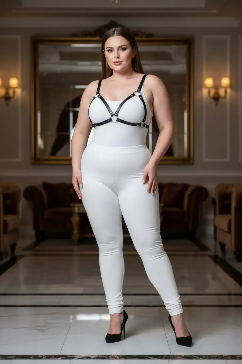 Büyük Beden Siyah Kadın Deri Harness Takım Halka Detaylı Sütyen Aksesuarı - APFT190