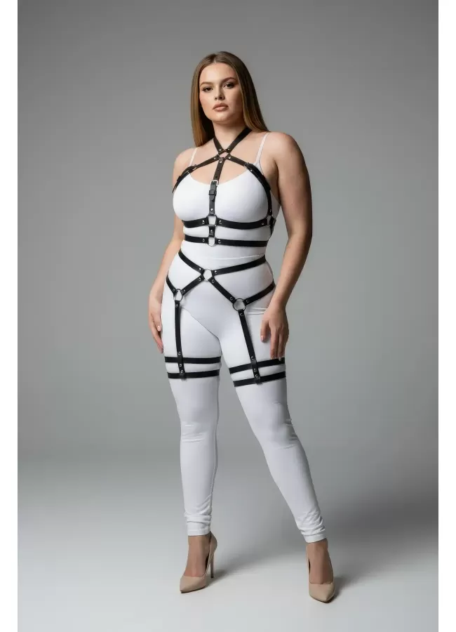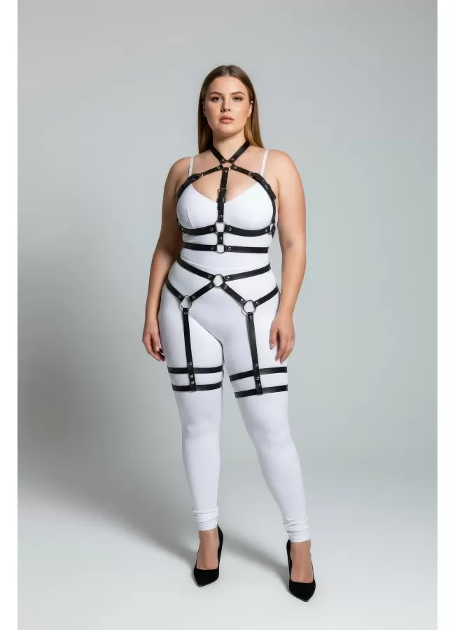 Büyük Beden Siyah Kadın Deri Jartiyer Harness Bel ve Bacak Detaylı Şık Aksesuar - APFT598