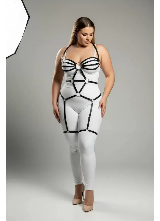 Büyük Beden Siyah Kadın Deri Jartiyer Harness Fantezi Vücut Aksesuarı - APFT568
