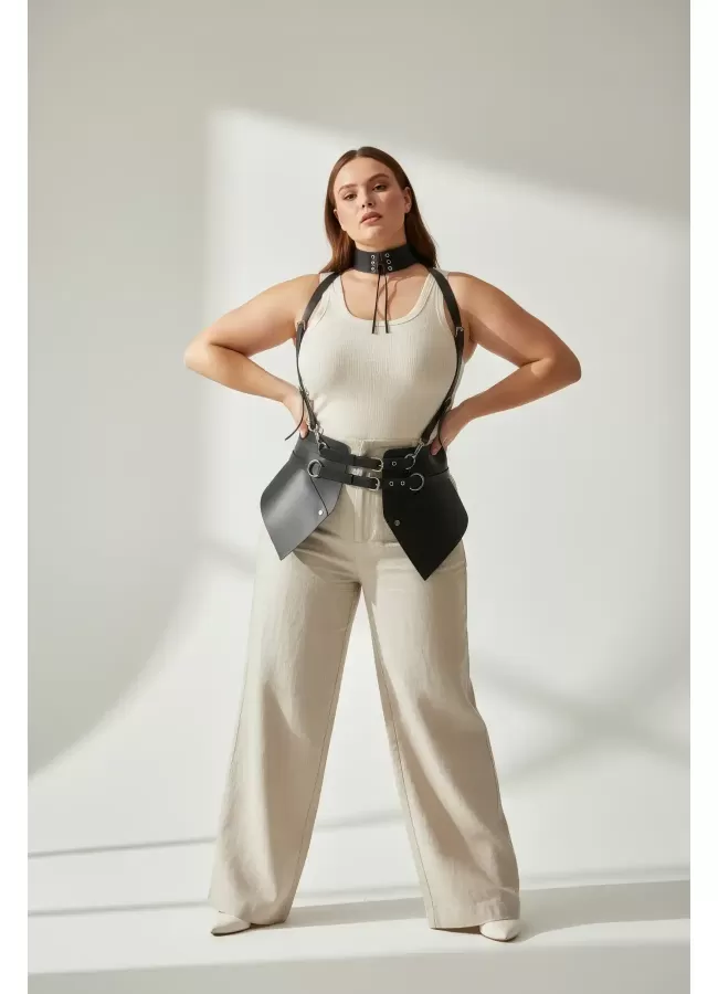 Siyah Kadın Kemer Omuz Detaylı Çift Tokalı Vücut Aksesuarı - APFT1113
