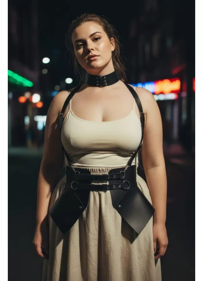 Tasmalı Harness Deri Jartiyer Takım