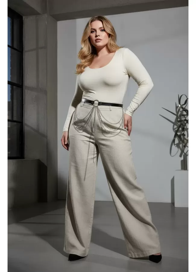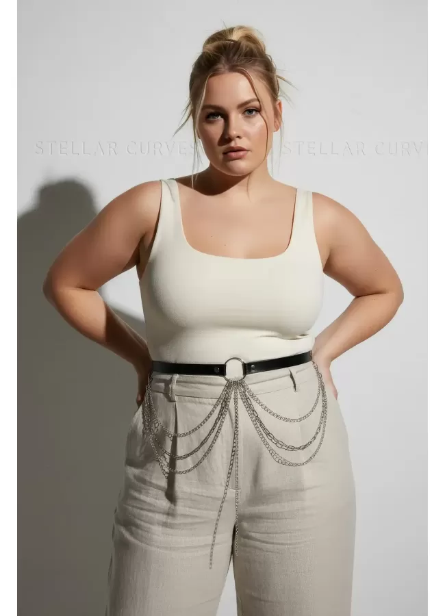 Büyük Beden Taba Kadın Korse Kemer Omuz Askılı Bağcık Detaylı - APFT1429