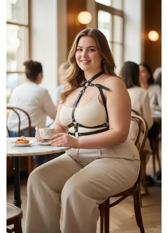 Büyük Beden Siyah Kadın Deri Kemer Harness Stil Kombin Tamamlayıcı - APFT728