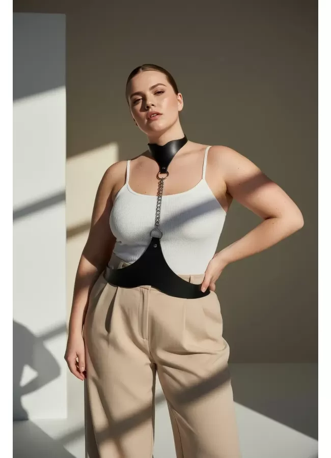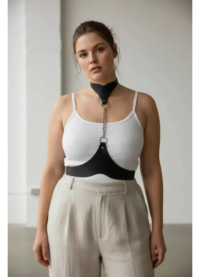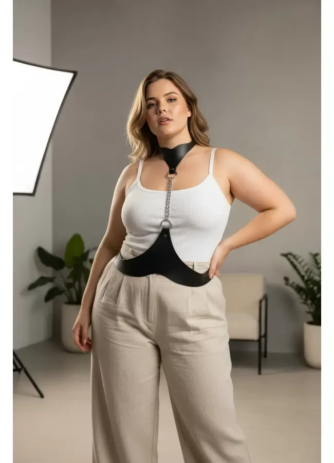 Siyah Harness Takım Deri Zincir Detaylı Tokalı - APFT1379