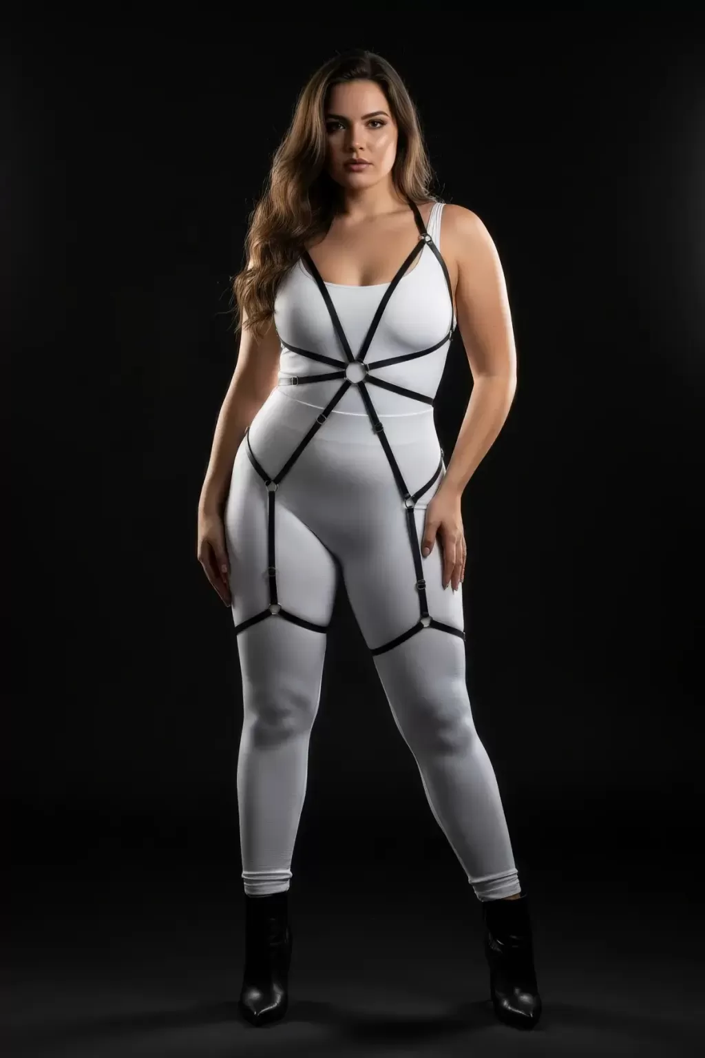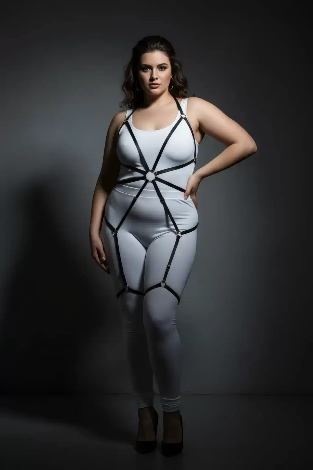 Büyük Beden Siyah Kadın Harness Lastik Jartiyerli Fantezi Aksesuar - APFT360