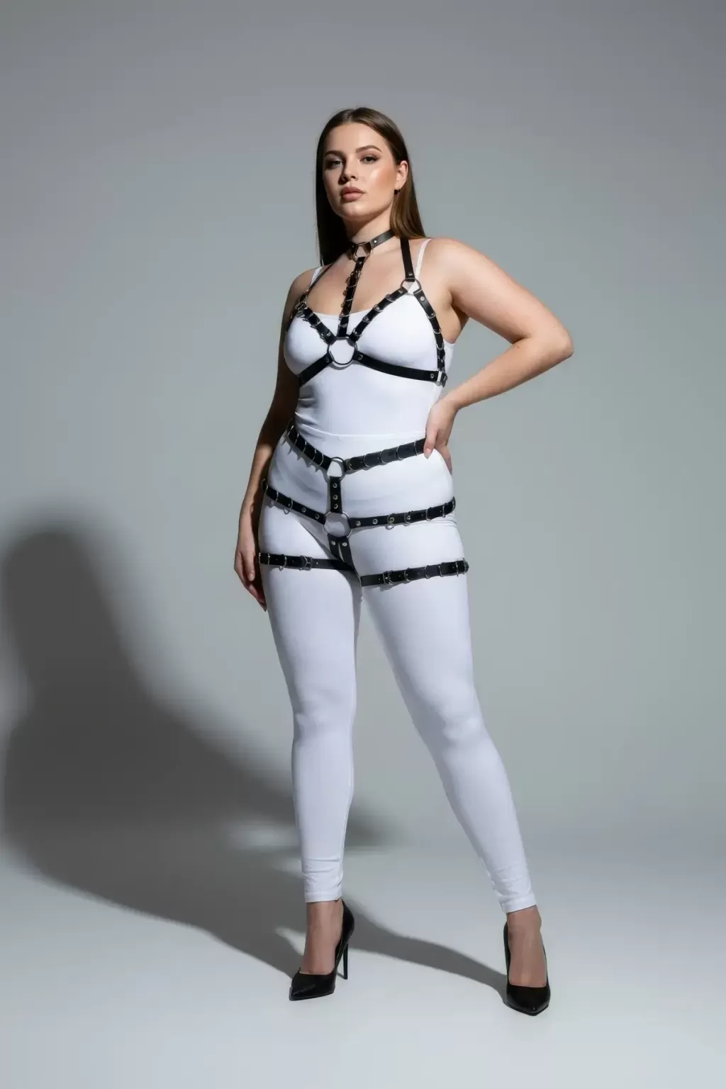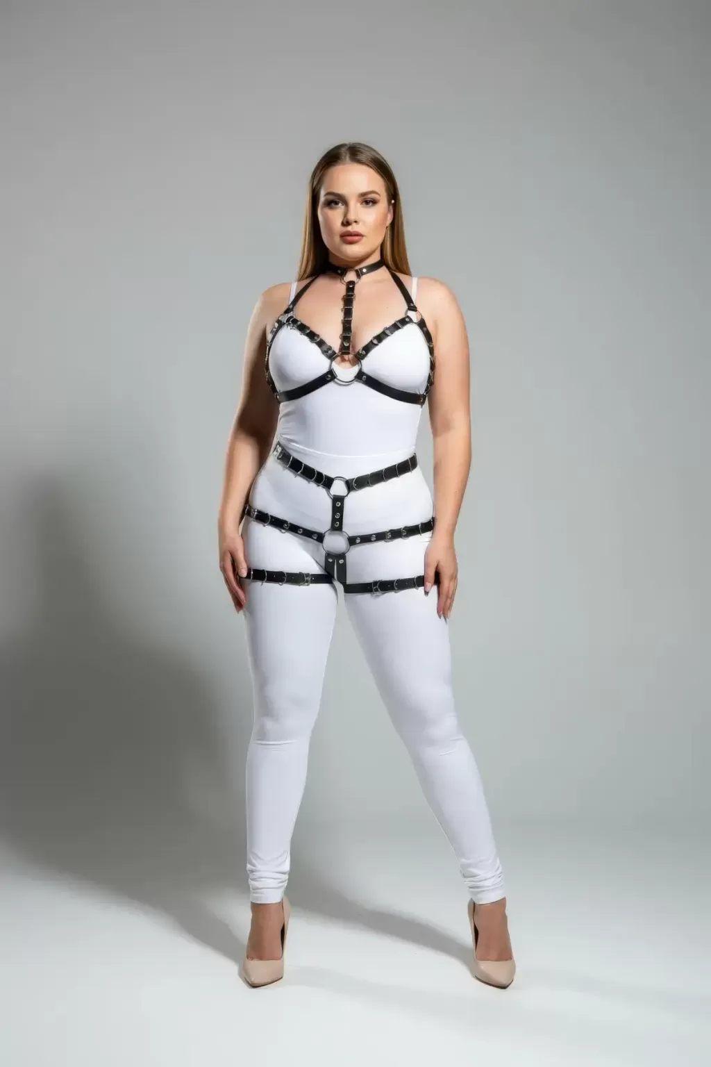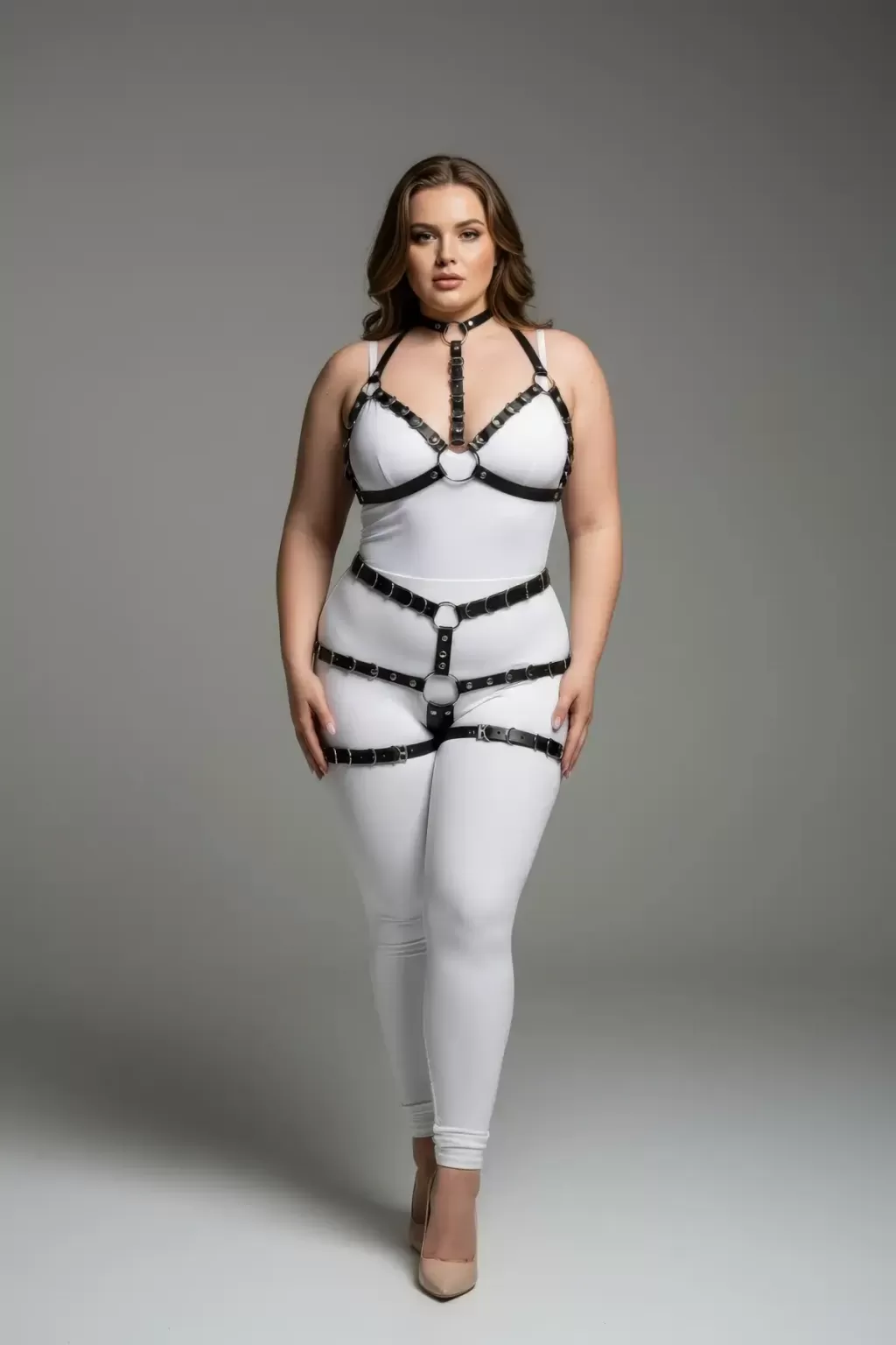 Büyük Beden Siyah Kadın Harness Takım Ayarlanabilir Deri Görünümlü Vücut Aksesuarı - APFT874