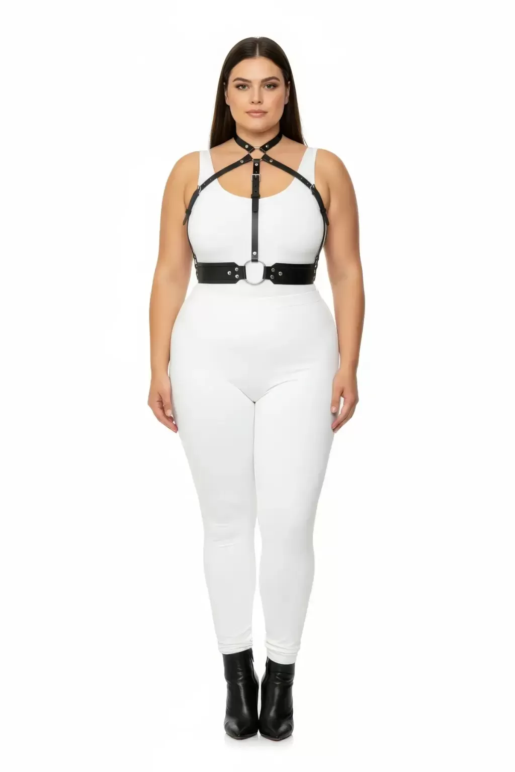 Büyük Beden Siyah Kadın Harness Takım Deri Vücut Aksesuarı Şık Kombin Tamamlayıcı - APFT1334