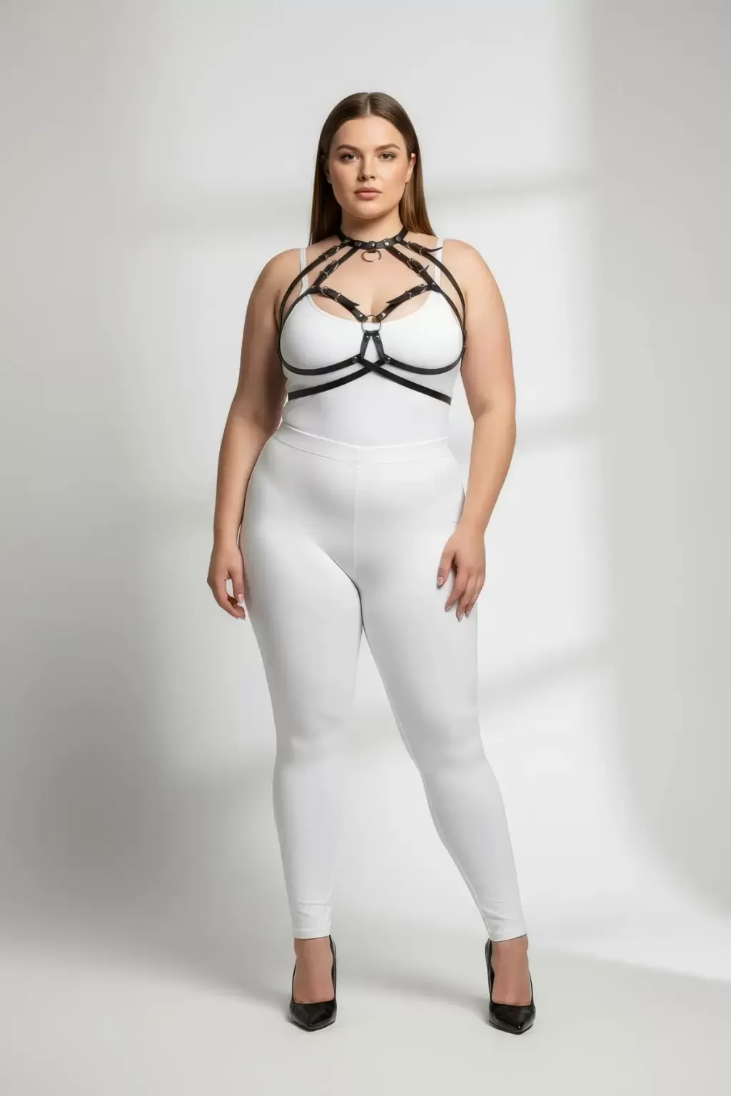 Büyük Beden Siyah Kadın Harness Takım Halka Detaylı Giyim Üzeri Aksesuar - APFT330