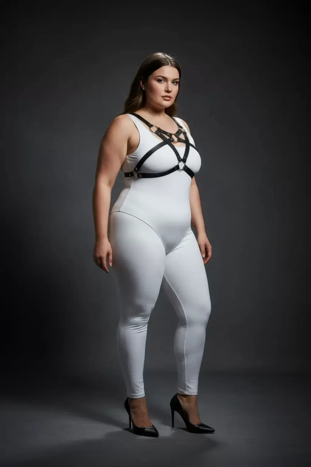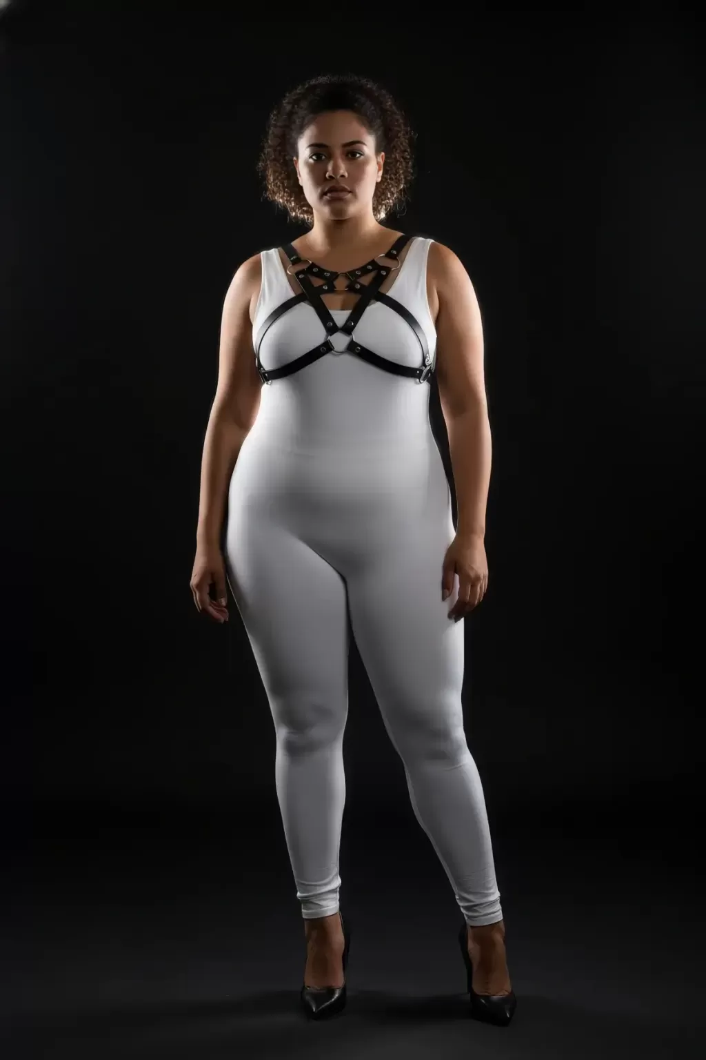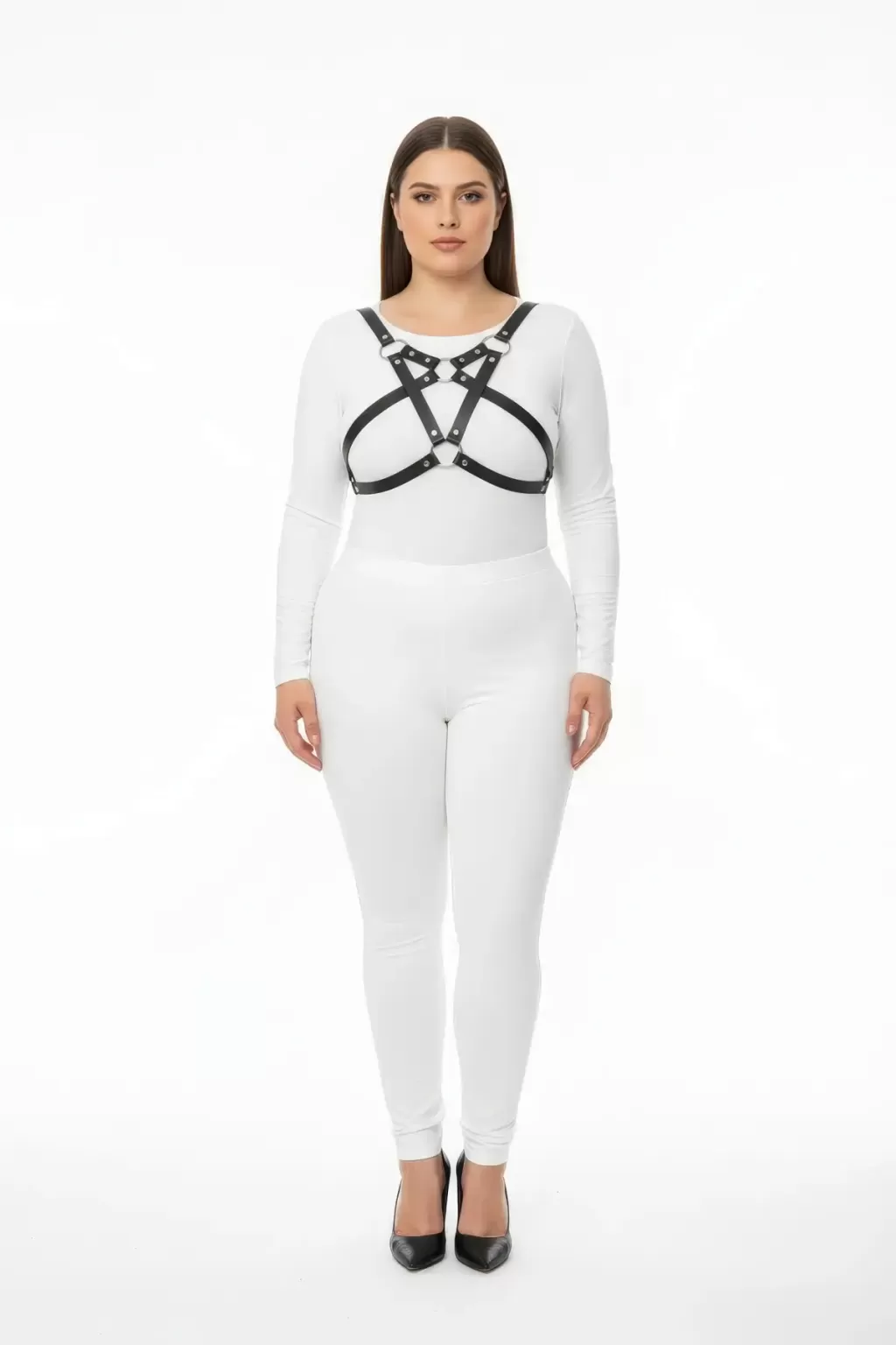 Büyük Beden Siyah Kadın Harness Takım Halka Detaylı Şık Fantezi Aksesuar - APFT1239