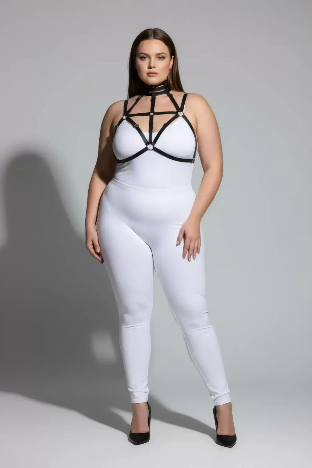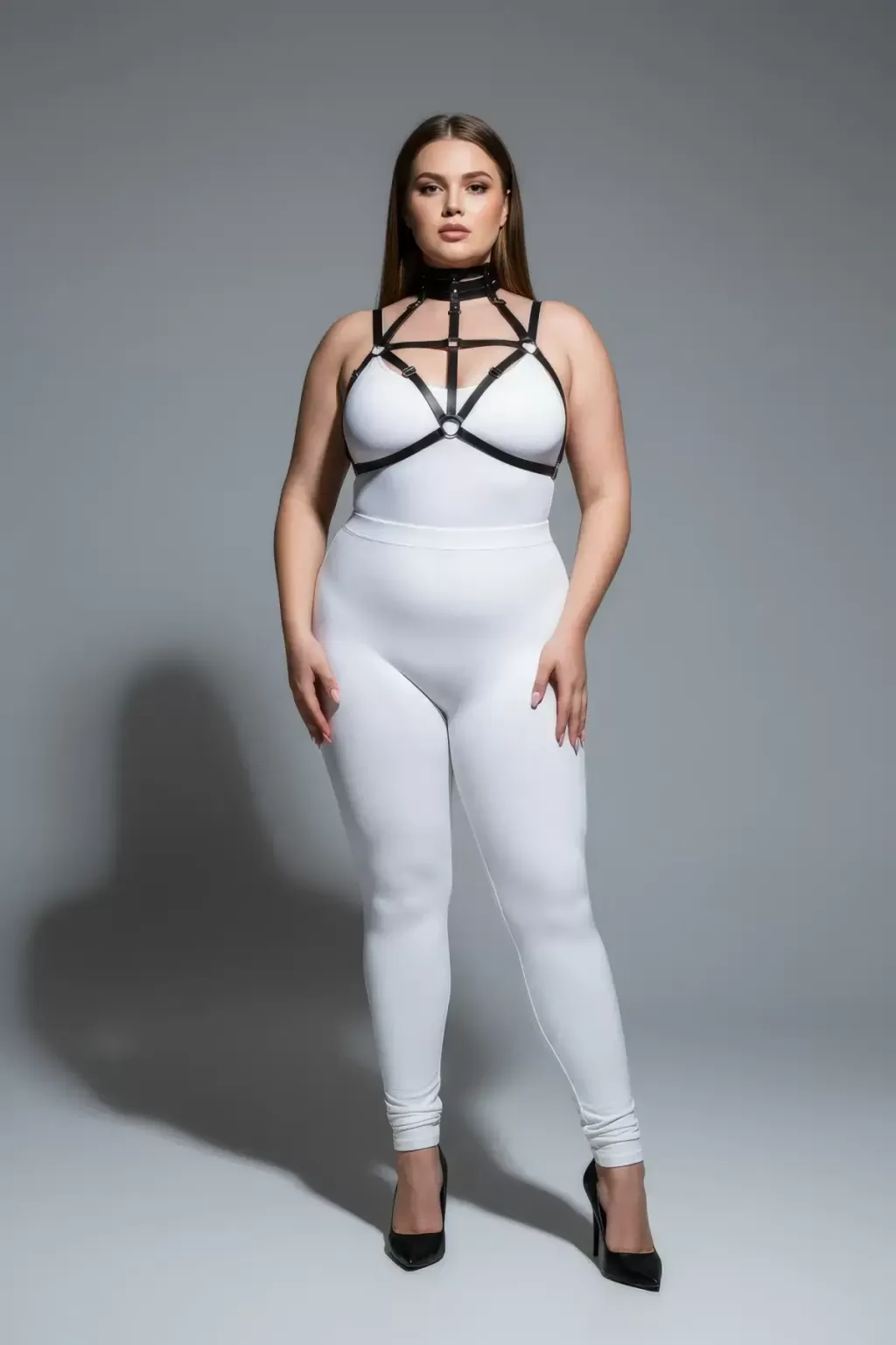 Büyük Beden Siyah Kadın Harness Takım Lastik Boyun Detaylı Fantazi Aksesuar - APFT118