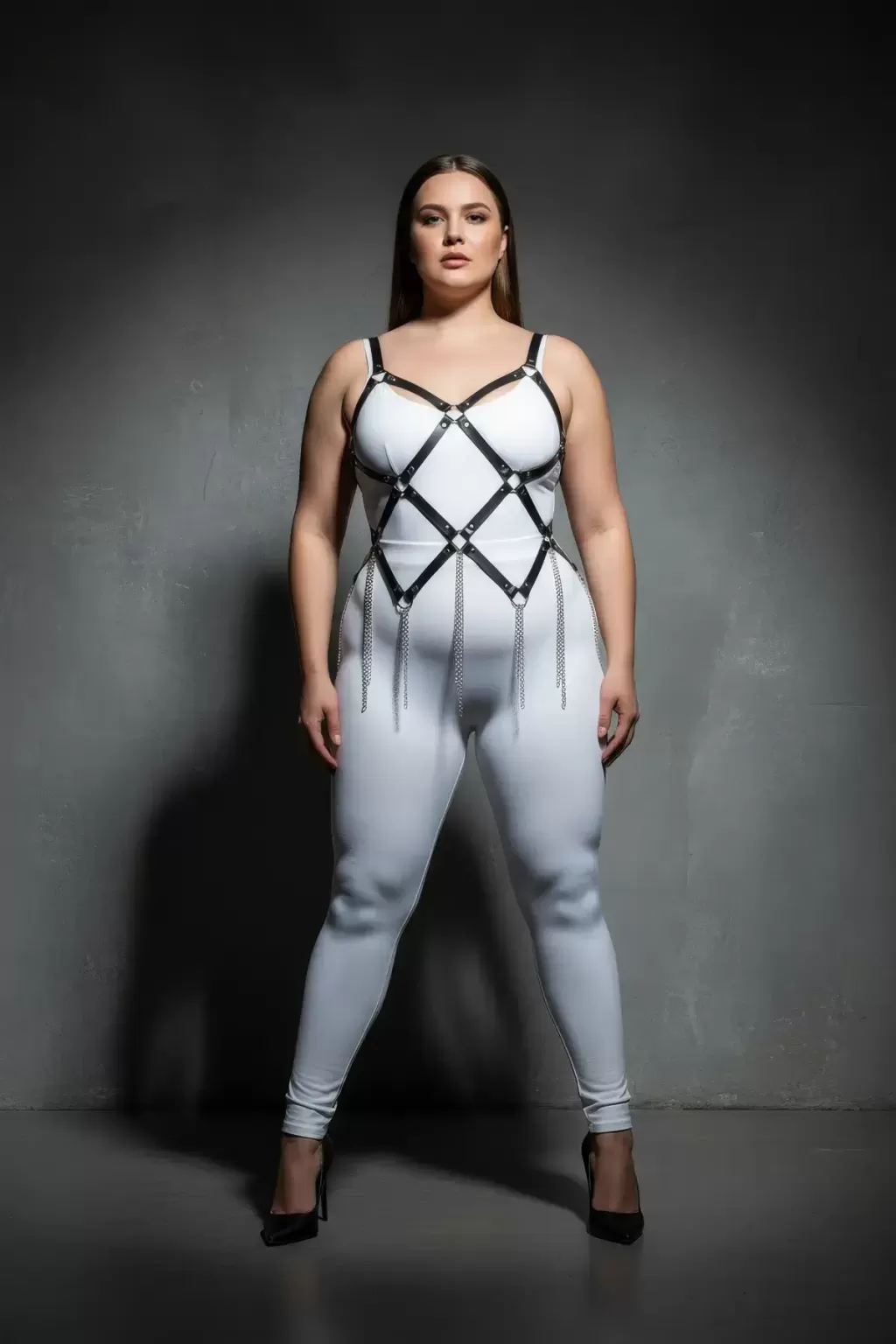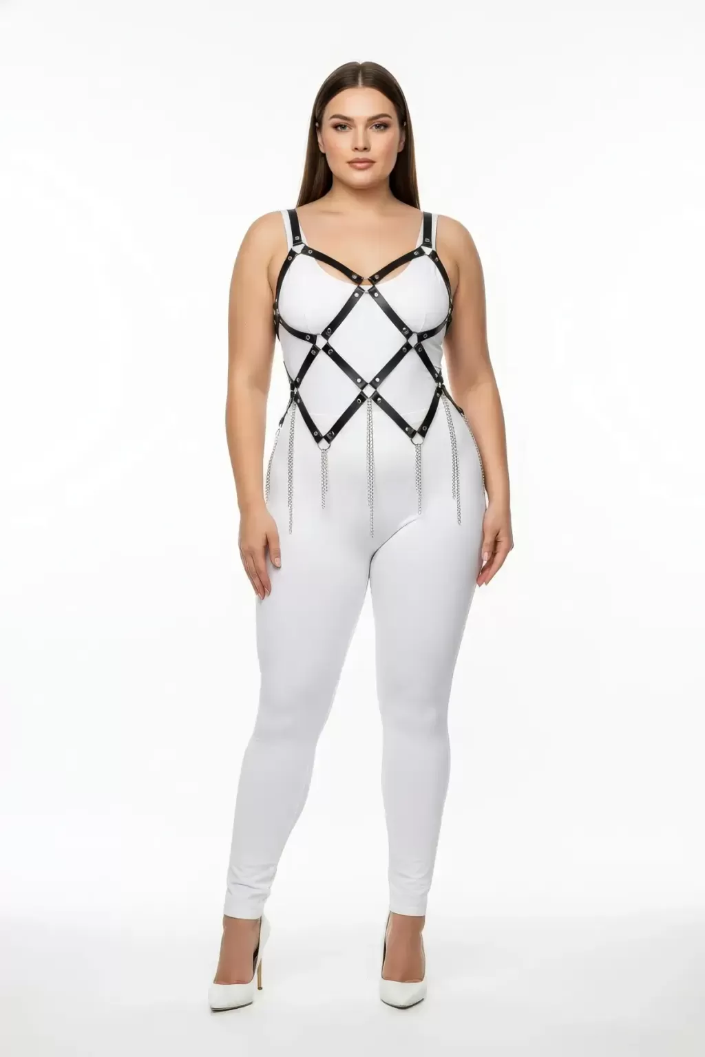Büyük Beden Siyah Kadın Harness Takım Zincir Detaylı Çarpıcı Tasarım - APFT950