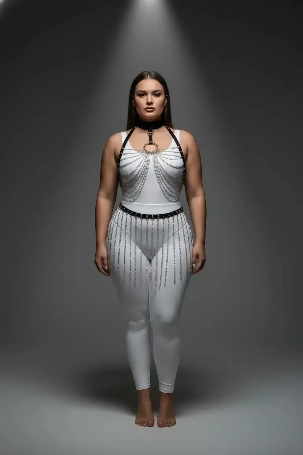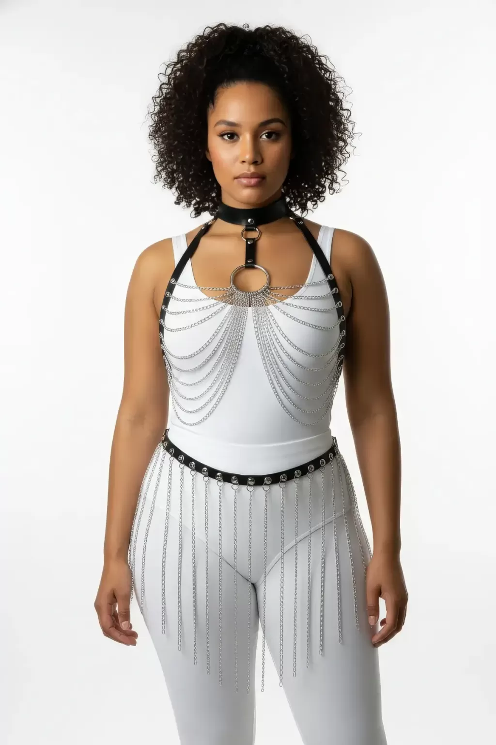 Büyük Beden Siyah Kadın Harness Takım Zincir Detaylı Seksi Deri - APFT462