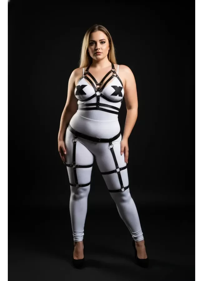 Büyük Beden Siyah Kadın Jartiyer Harness Fantazi Deri Takım - APFT303