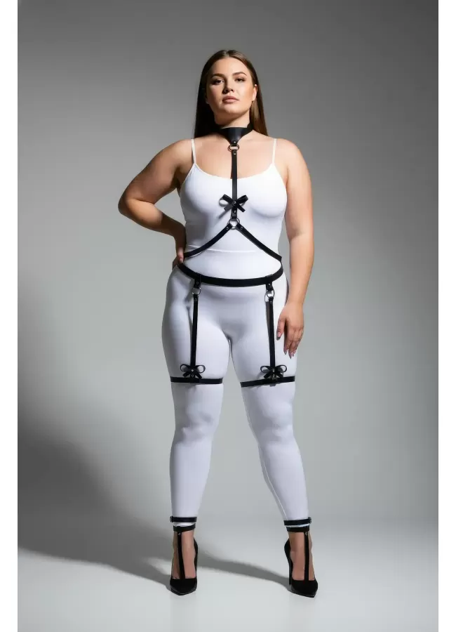 Büyük Beden Siyah Kadın Jartiyer Harness Fiyonk Detaylı Fantazi Vücut Aksesuarı - APFT276