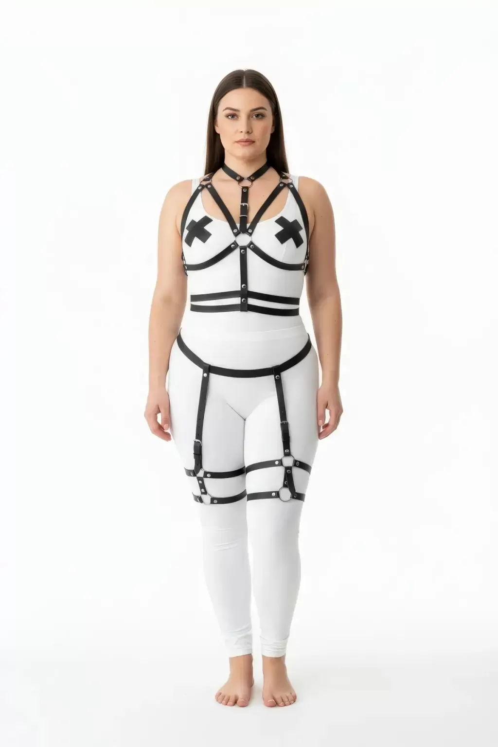 Büyük Beden Siyah Kadın Jartiyerli Harness Takım Ayarlanabilir Deri Aksesuar - APFT455