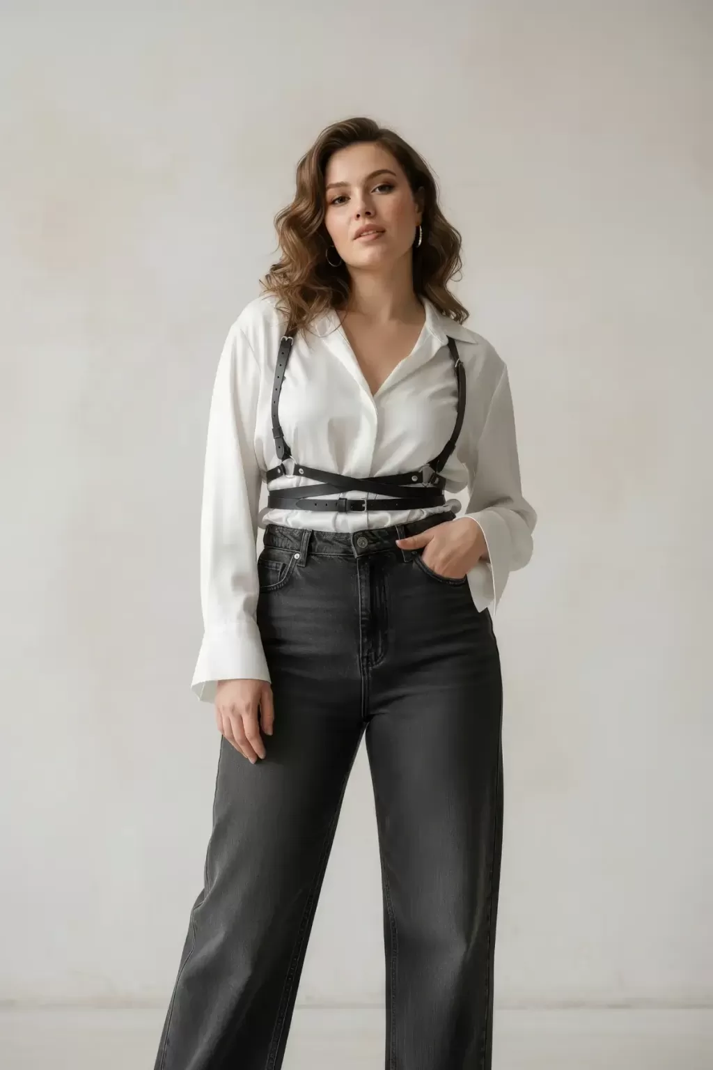 Büyük Beden Siyah Kadın Kemer Çapraz Askılı Deri Vücut Aksesuarı - APFT198