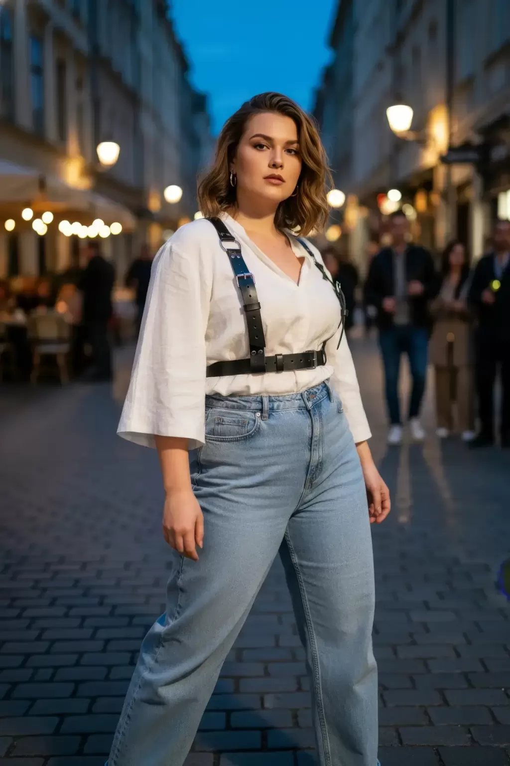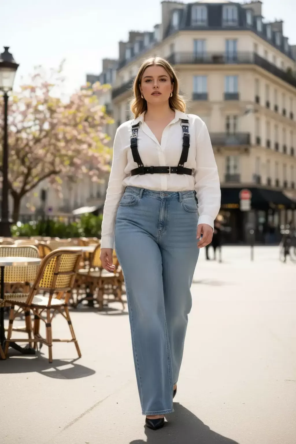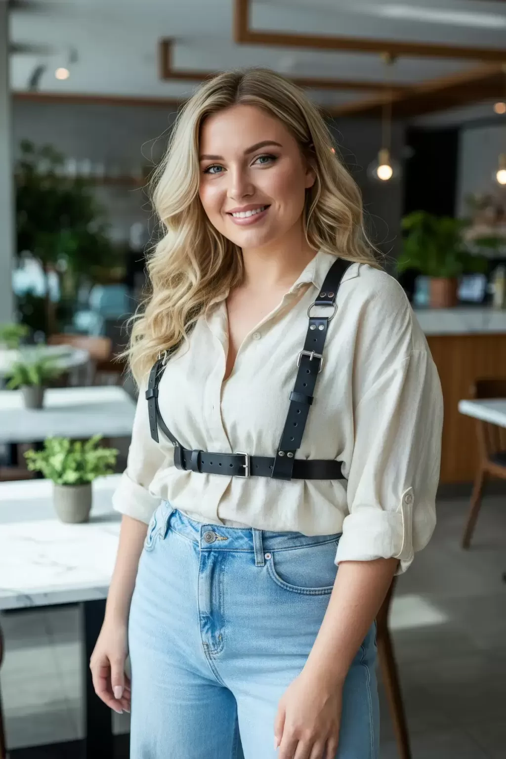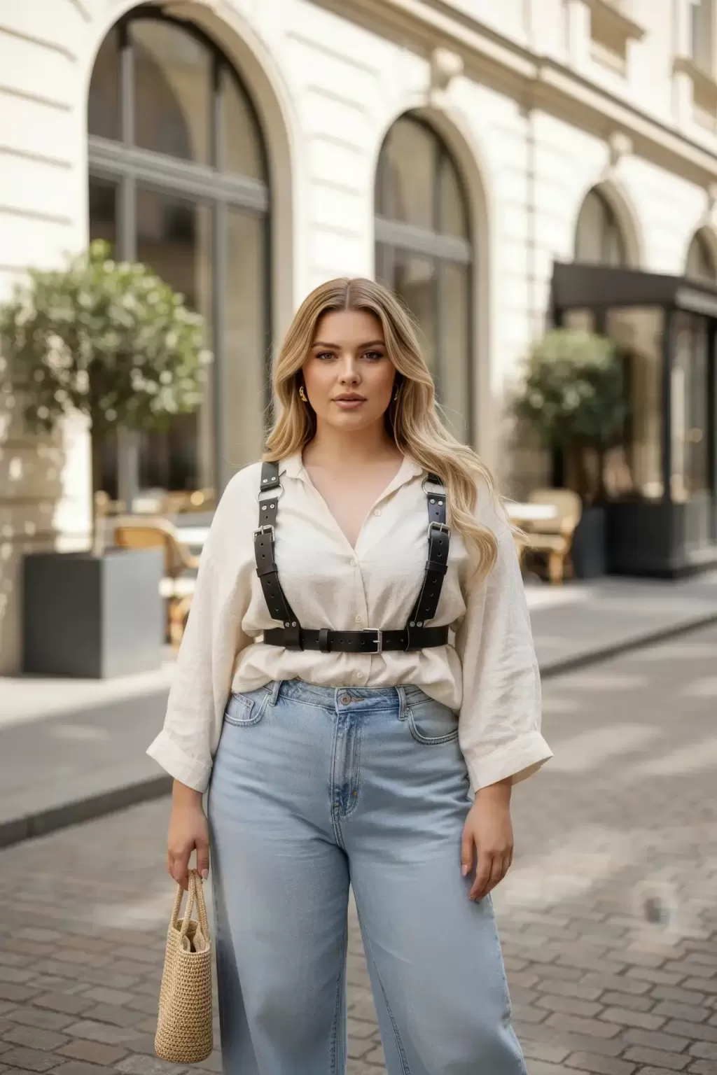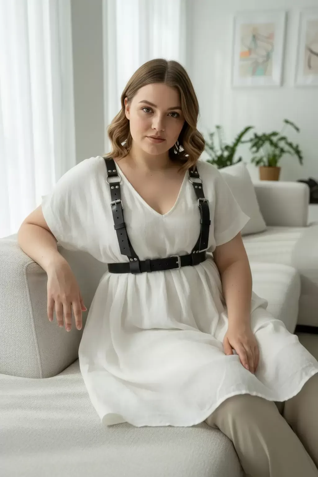 Büyük Beden Siyah Kadın Kemer Çok Tokalı Deri Harness Korse Tasarım - APFT529