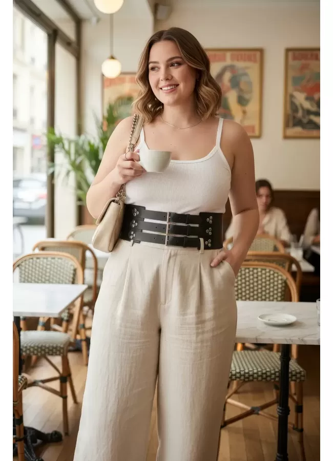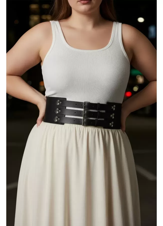 Siyah Kadın Kemer Vücut Aksesuarı Ayarlanabilir Tokalı - APFT1113
