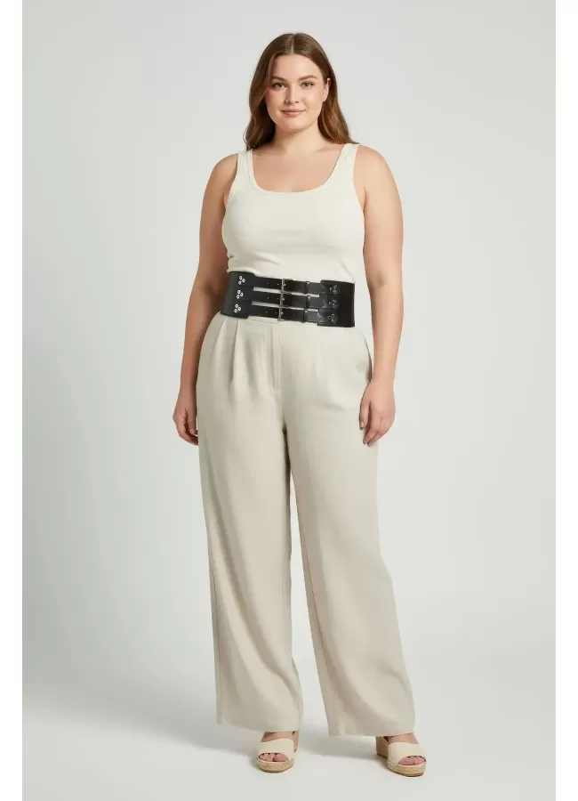Büyük Beden Taba Kadın Korse Kemer Omuz Askılı Bağcık Detaylı - APFT1429