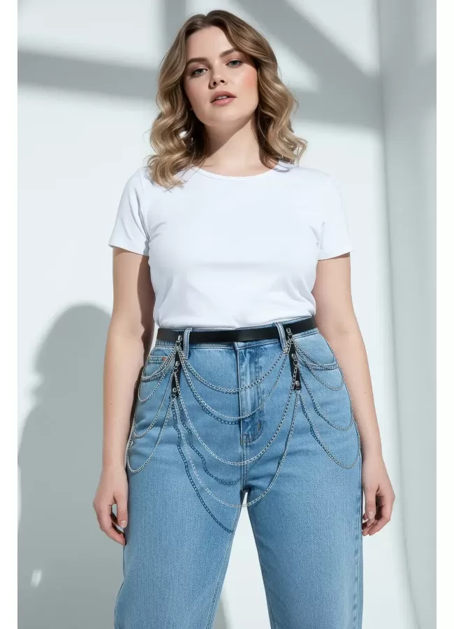 Büyük Beden Siyah Kadın Kemer Çoklu Zincir Detaylı Estetik Tasarım - APFT921