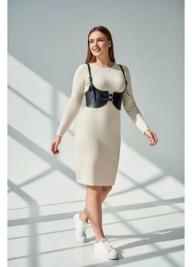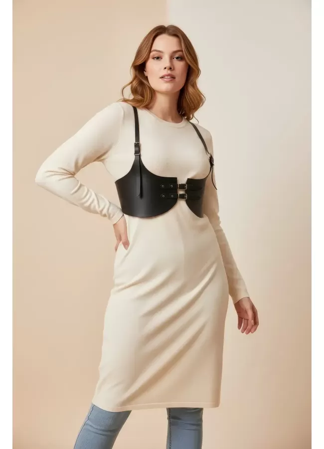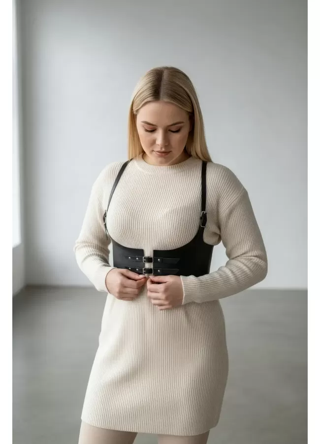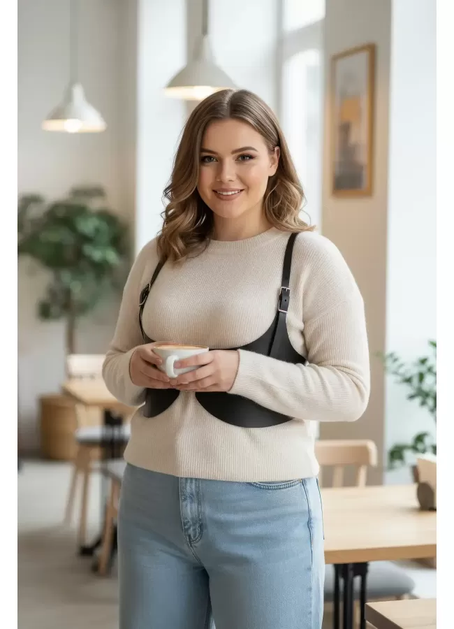 Büyük Beden Siyah Kadın Kemer Deri Harness Detaylı Şık Vücut Aksesuarı - APFT605