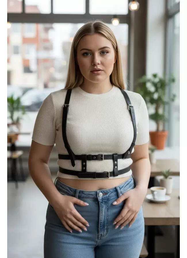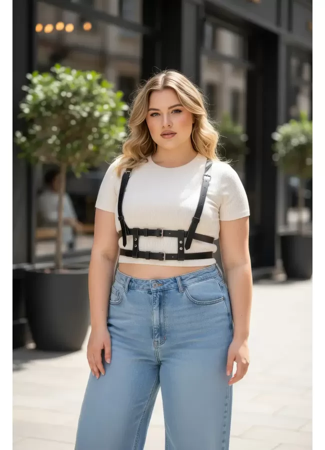 Siyah Kadın Kemer Omuz Detaylı Çift Tokalı Vücut Aksesuarı - APFT1113
