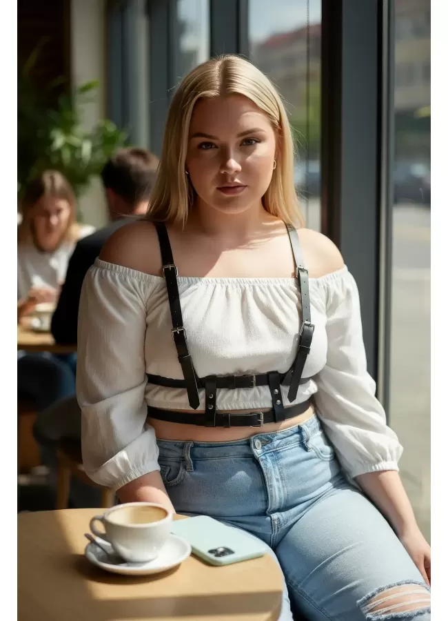 Kelepçeli Kalça Harness Deri Erotik Giyim