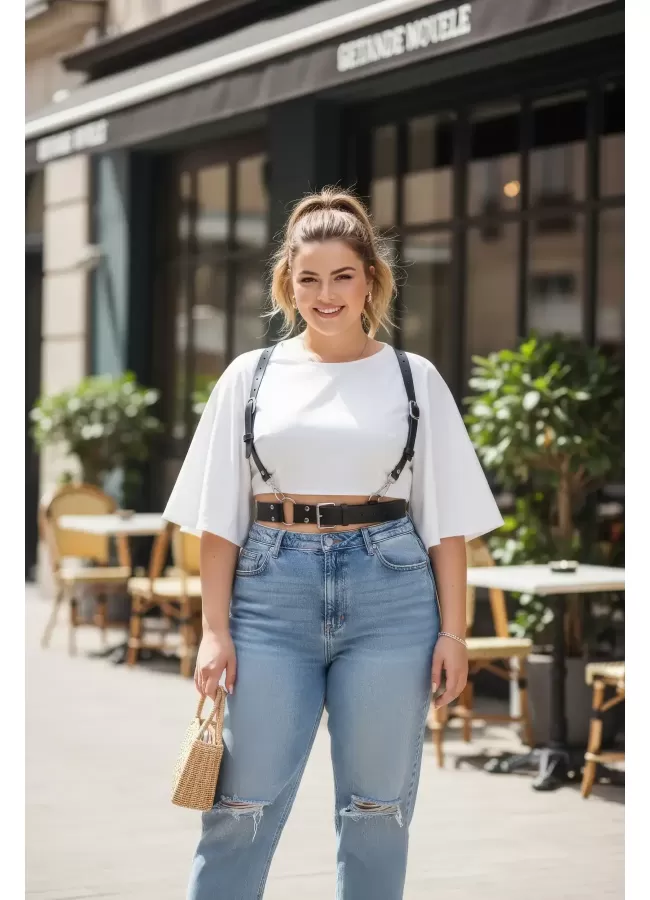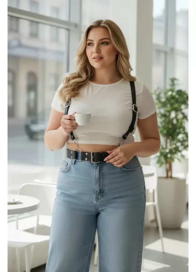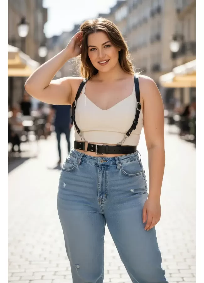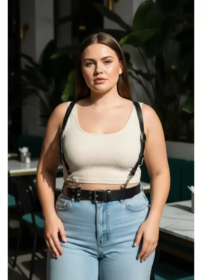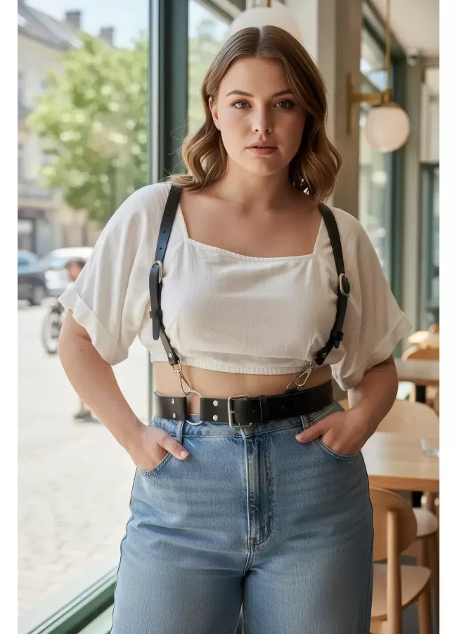Siyah Kadın Kemer Omuz Detaylı Çift Tokalı Vücut Aksesuarı - APFT1113