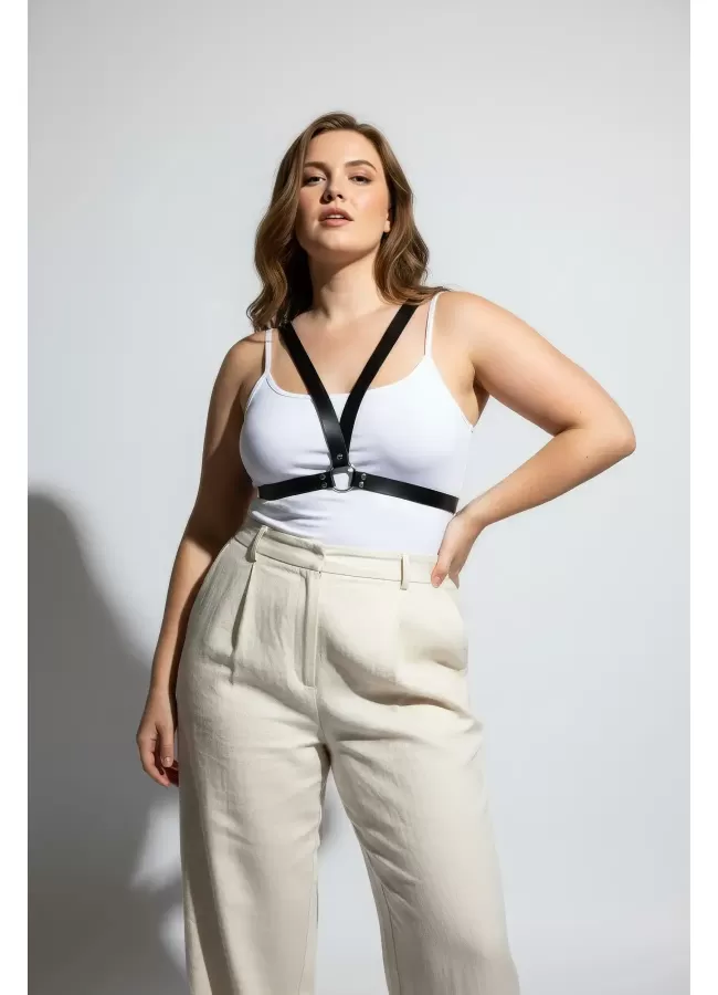 Büyük Beden Siyah Kadın Kemer Deri Harness Stil Kombin Tamamlayıcı - APFT633