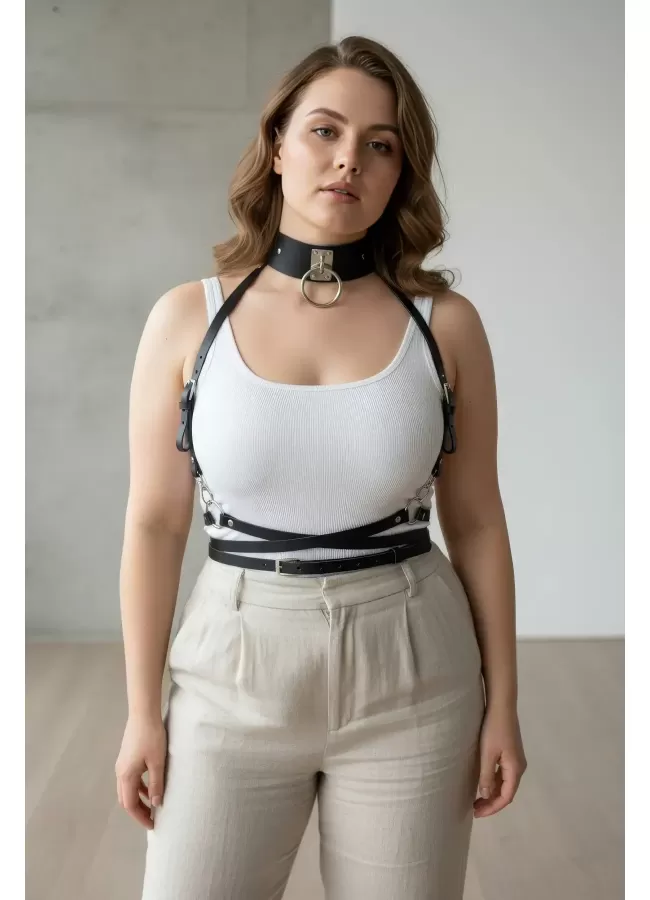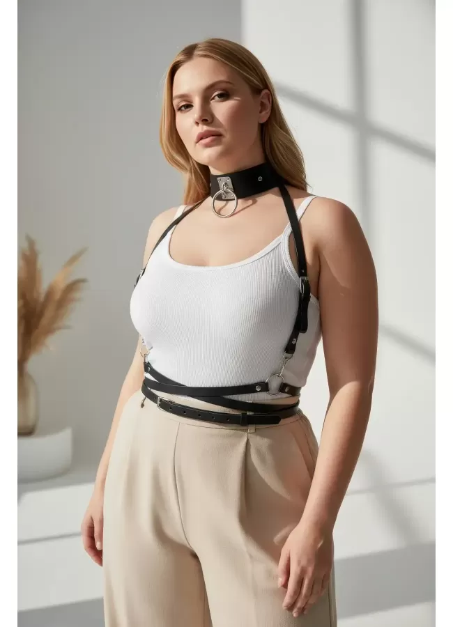 Tasmalı Harness Deri Jartiyer Takım