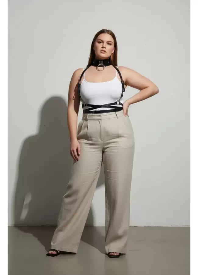 Büyük Beden Taba Kadın Korse Kemer Omuz Askılı Bağcık Detaylı - APFT1429