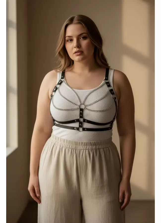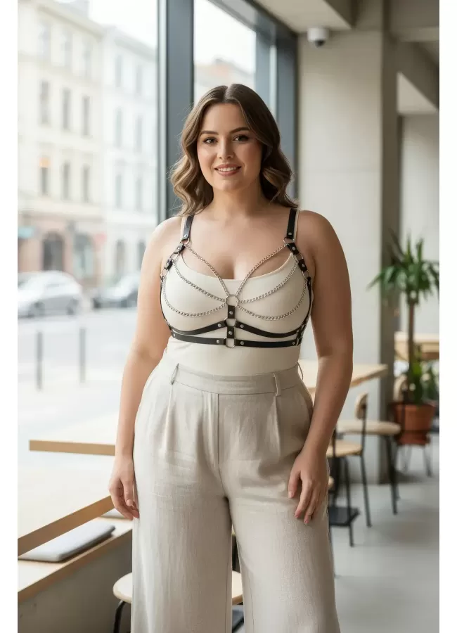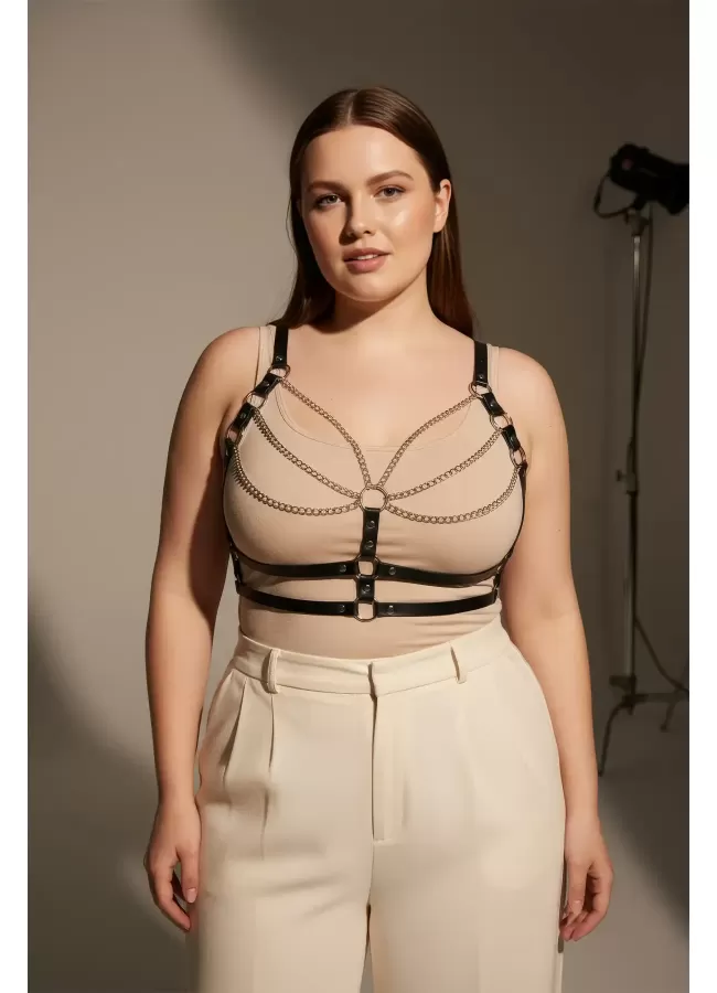 Siyah Harness Takım Zincir Detaylı Halkalı Vücut Aksesuarı - APFT1387