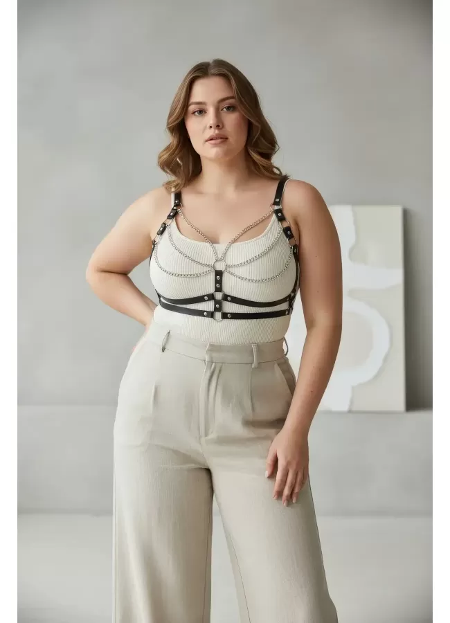 Siyah Harness Takım Deri Zincir Detaylı Tokalı - APFT1379