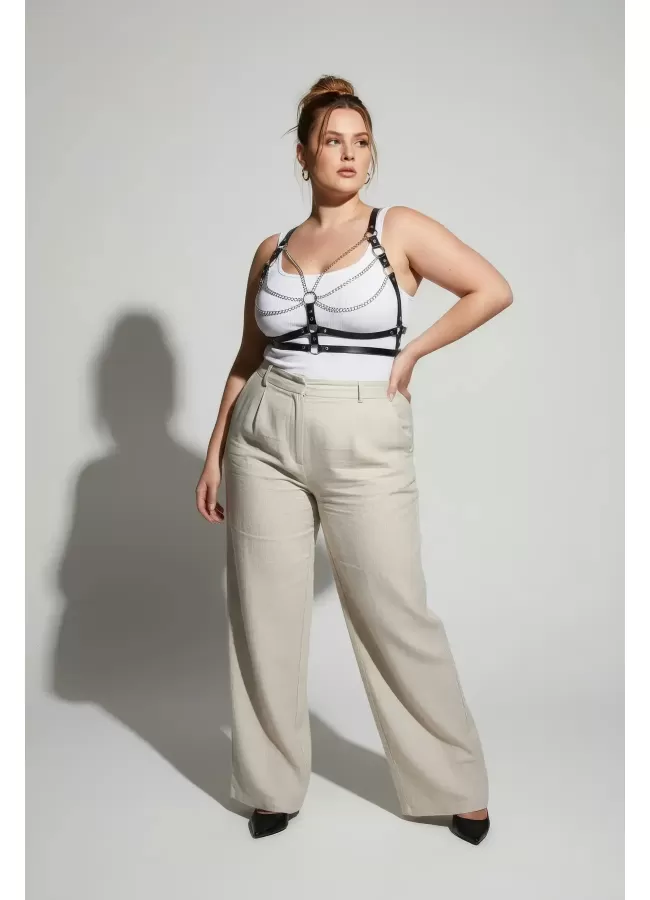 Büyük Beden Kırmızı Kadın Kemer Deri Harness Zincir Detaylı Vücut Aksesuarı - APFT9