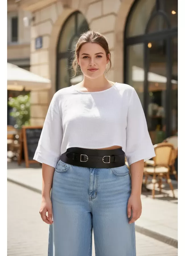 Siyah Kadın Kemer Omuz Detaylı Çift Tokalı Vücut Aksesuarı - APFT1113