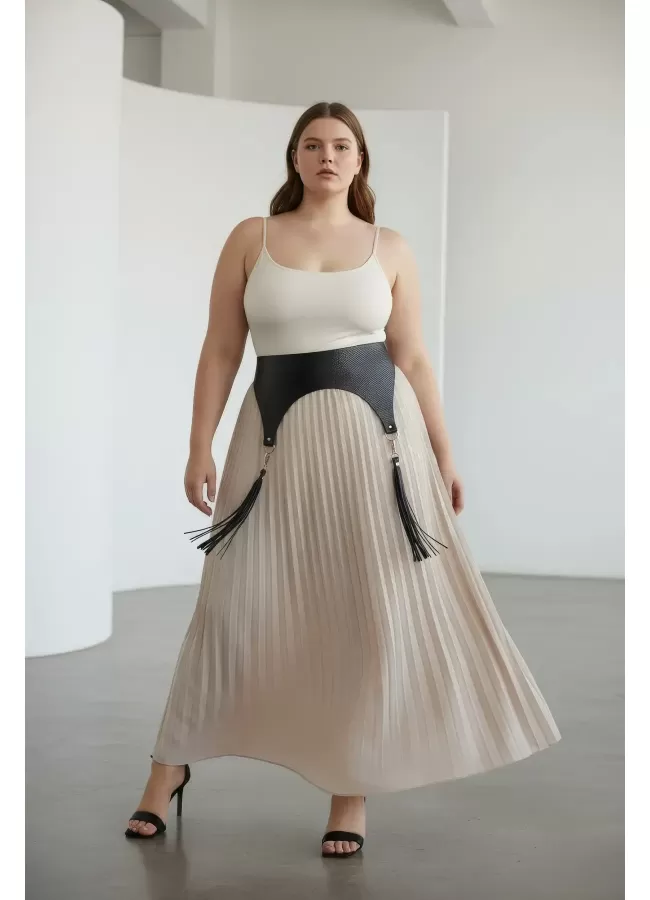 Büyük Beden Taba Kadın Korse Kemer Omuz Askılı Bağcık Detaylı - APFT1429