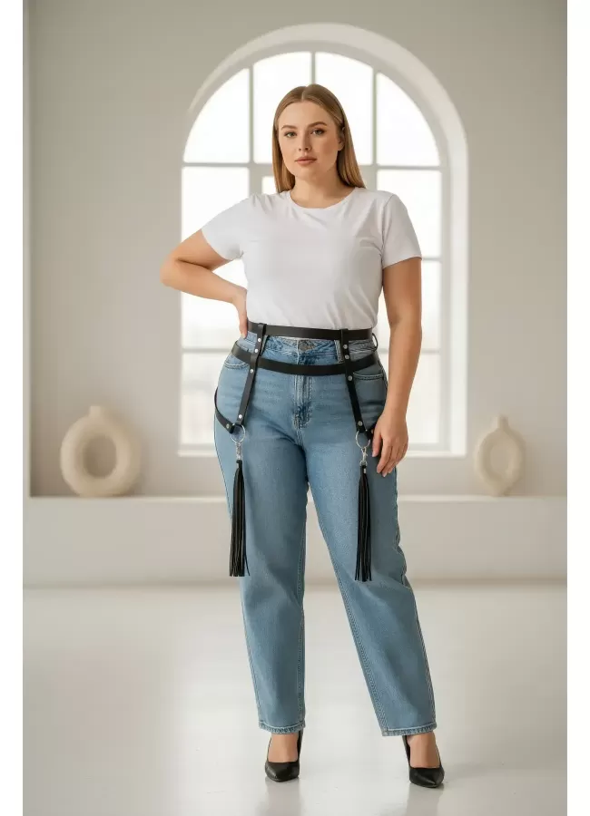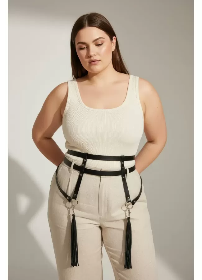 Siyah Kadın Kemer Omuz Detaylı Çift Tokalı Vücut Aksesuarı - APFT1113