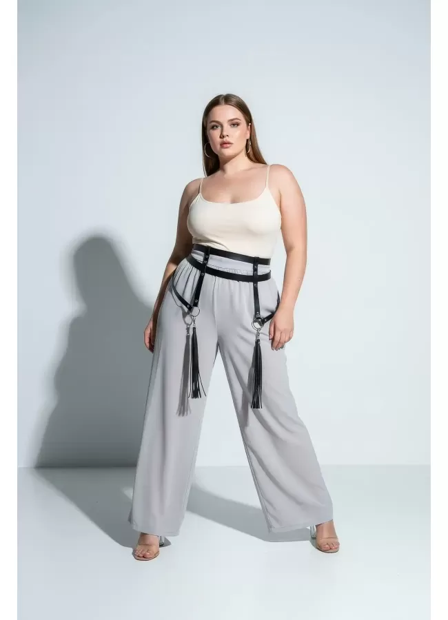 Büyük Beden Kırmızı Kadın Kemer Deri Harness Zincir Detaylı Vücut Aksesuarı - APFT9