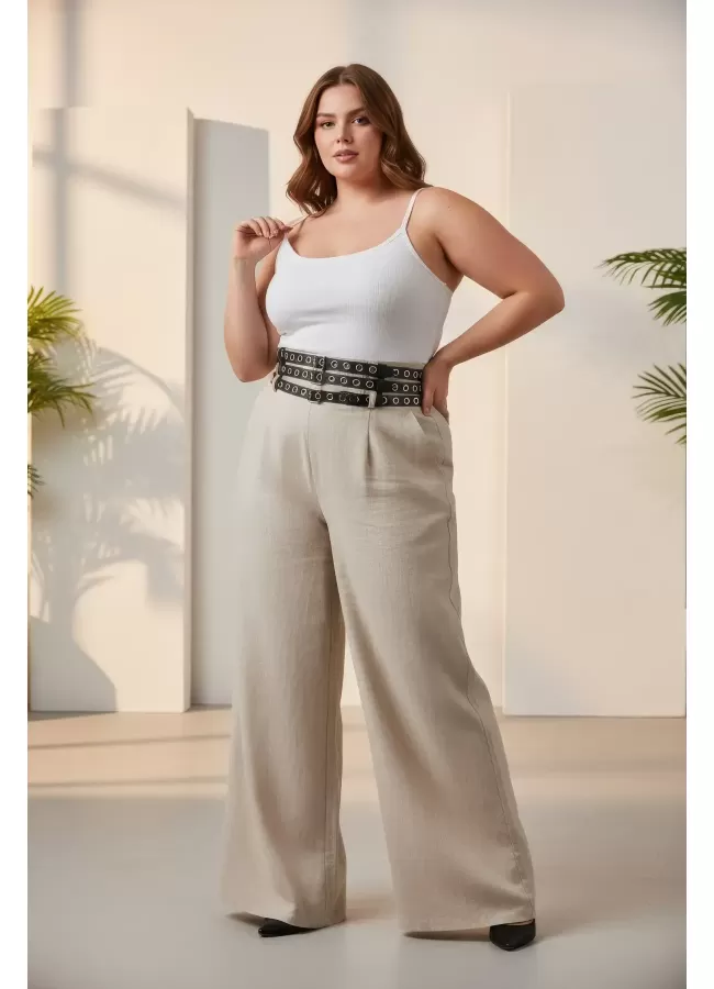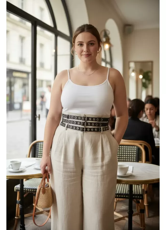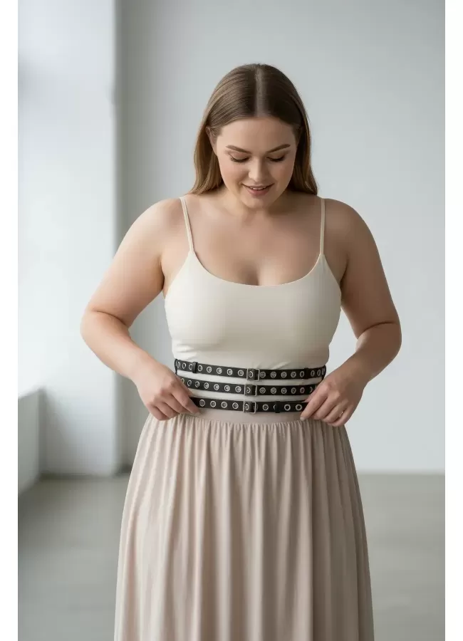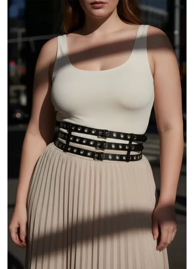 Büyük Beden Siyah Kadın Kemer Kalın Korse Stil Zımba Detaylı - APFT641