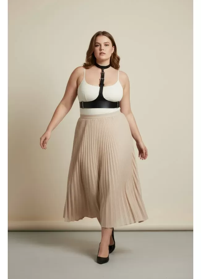 Büyük Beden Taba Kadın Korse Kemer Omuz Askılı Bağcık Detaylı - APFT1429