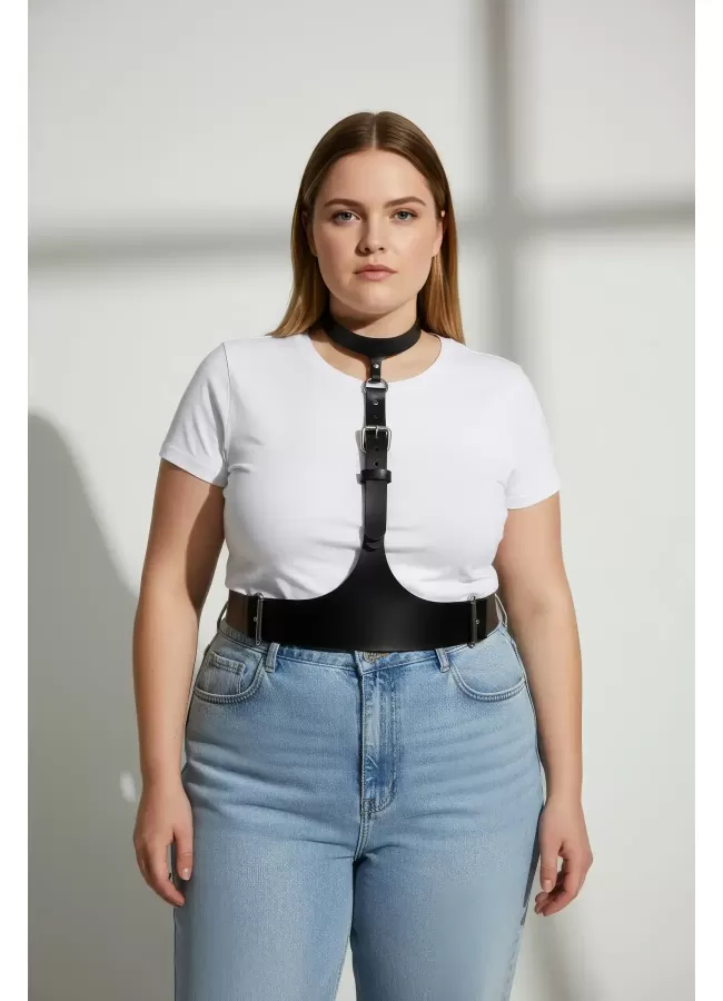 Siyah Kadın Kemer Omuz Detaylı Çift Tokalı Vücut Aksesuarı - APFT1113