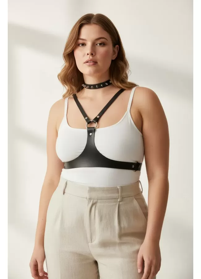 Siyah Harness Takım Deri Zincir Detaylı Tokalı - APFT1379