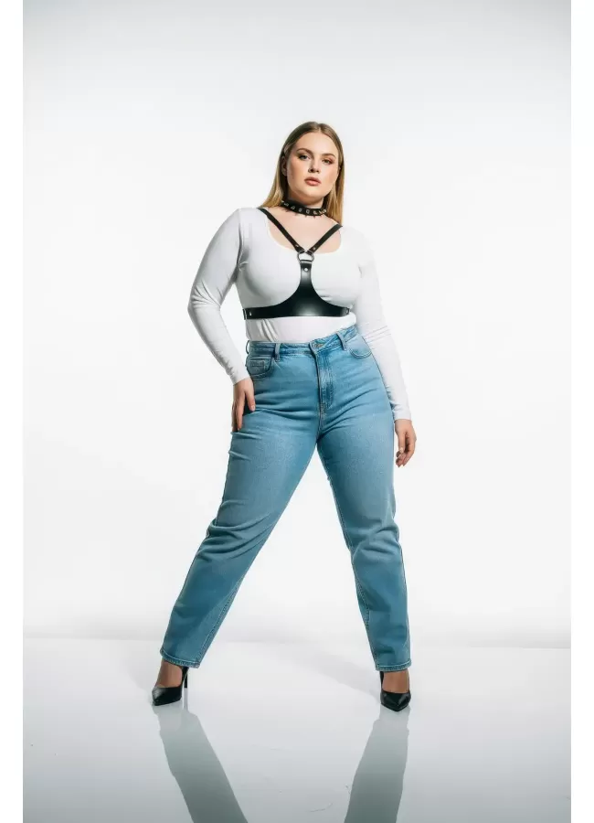 Büyük Beden Kırmızı Kadın Kemer Deri Harness Zincir Detaylı Vücut Aksesuarı - APFT9