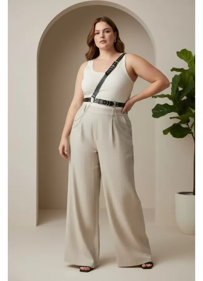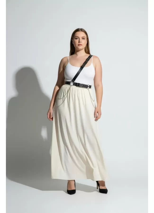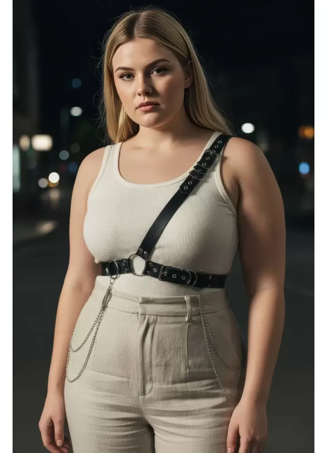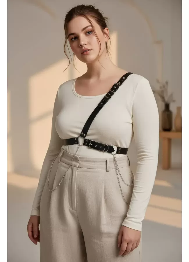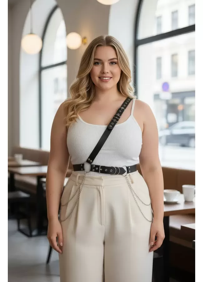 Büyük Beden Siyah Kadın Kemer Zincir Detaylı Body Harness Stil Vücut Aksesuarı - APFT813