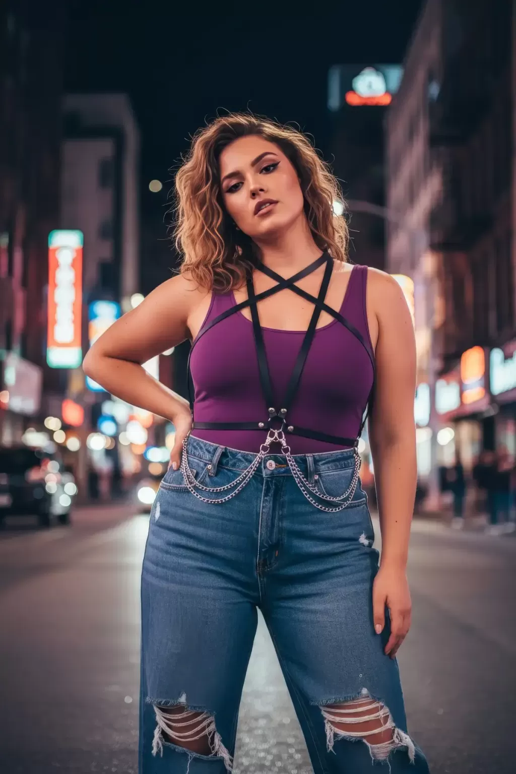 Büyük Beden Siyah Kadın Kemer Zincir Detaylı Deri Vücut Aksesuarı - APFT52