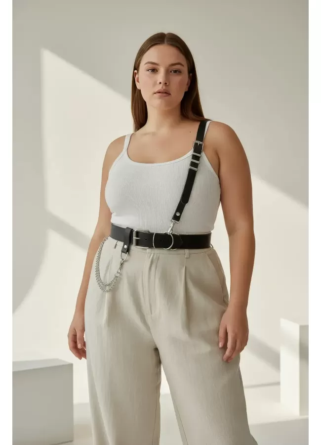 Siyah Kadın Kemer Omuz Detaylı Çift Tokalı Vücut Aksesuarı - APFT1113