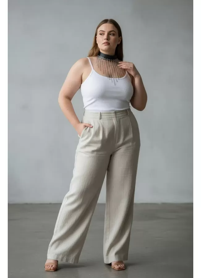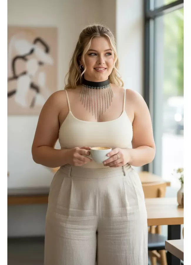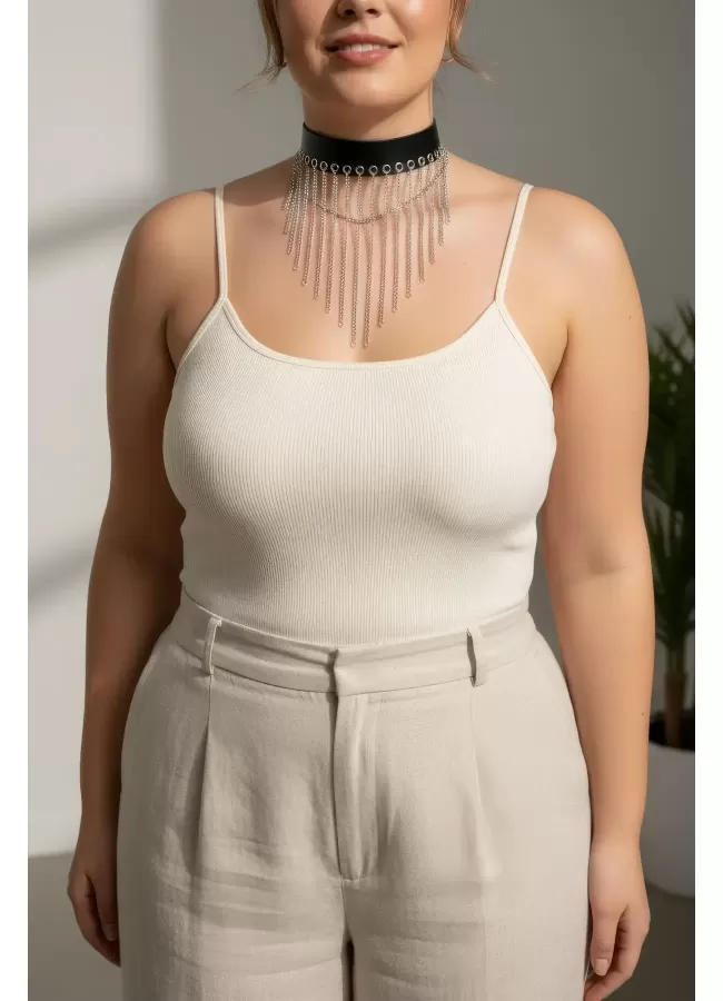 Büyük Beden Taba Kadın Korse Kemer Omuz Askılı Bağcık Detaylı - APFT1429