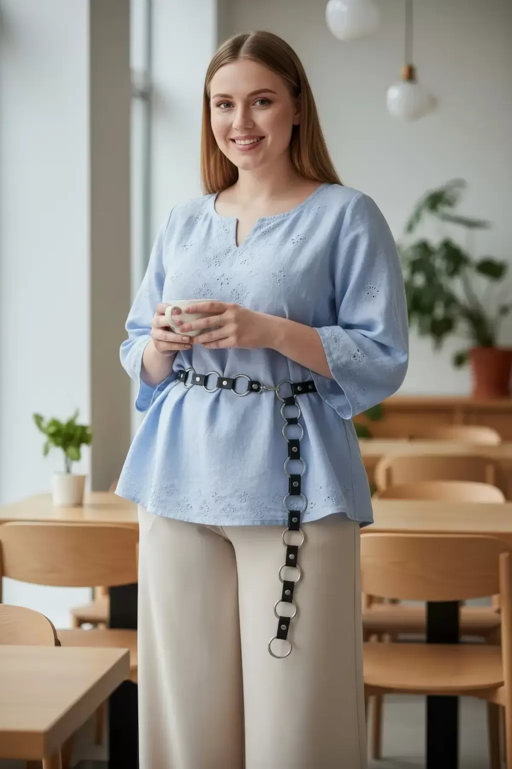 Büyük Beden Siyah Kadın Kemer Zincir Halka Detaylı Elbise ve Gömlek Kombin Tamamlayıcı - APFT427