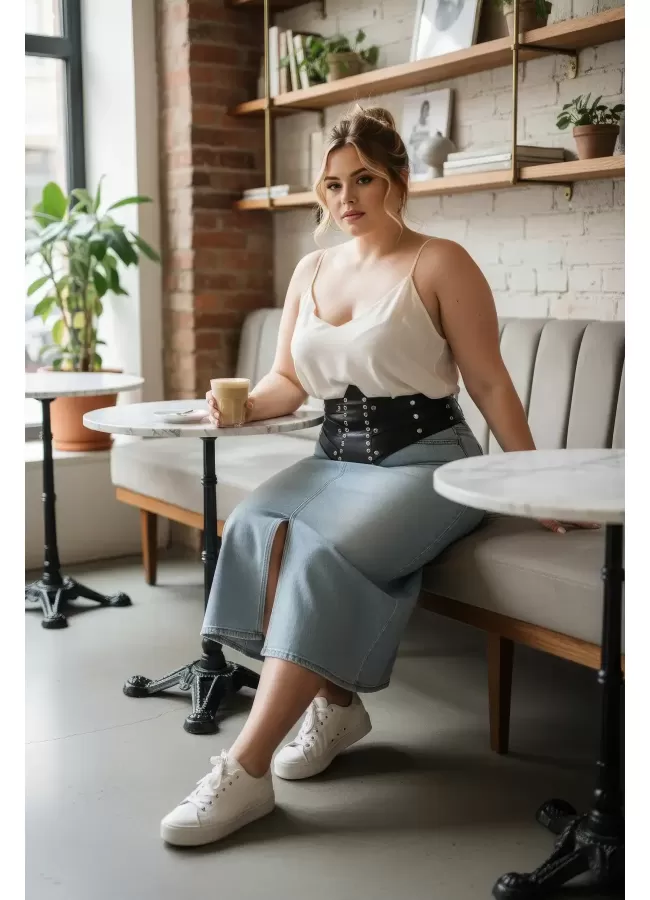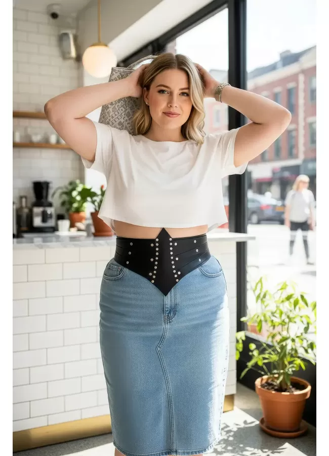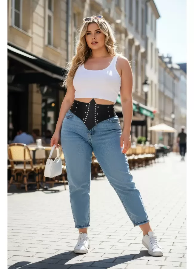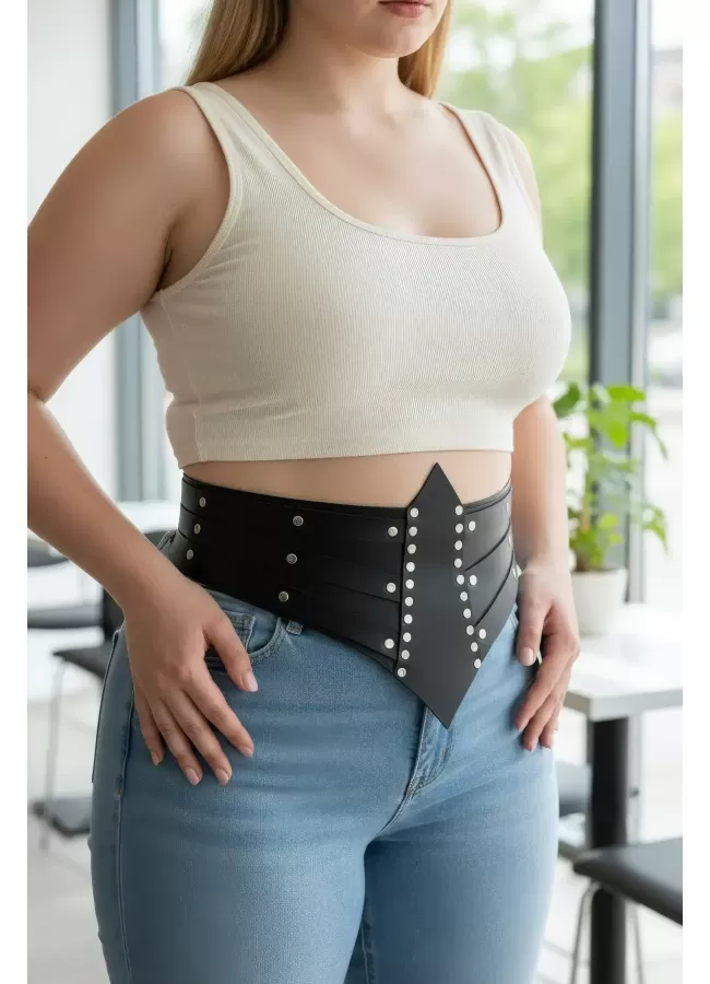 Büyük Beden Siyah Kadın Korse Kemer, Geniş ve Kuşgözü Detaylı - APFT905
