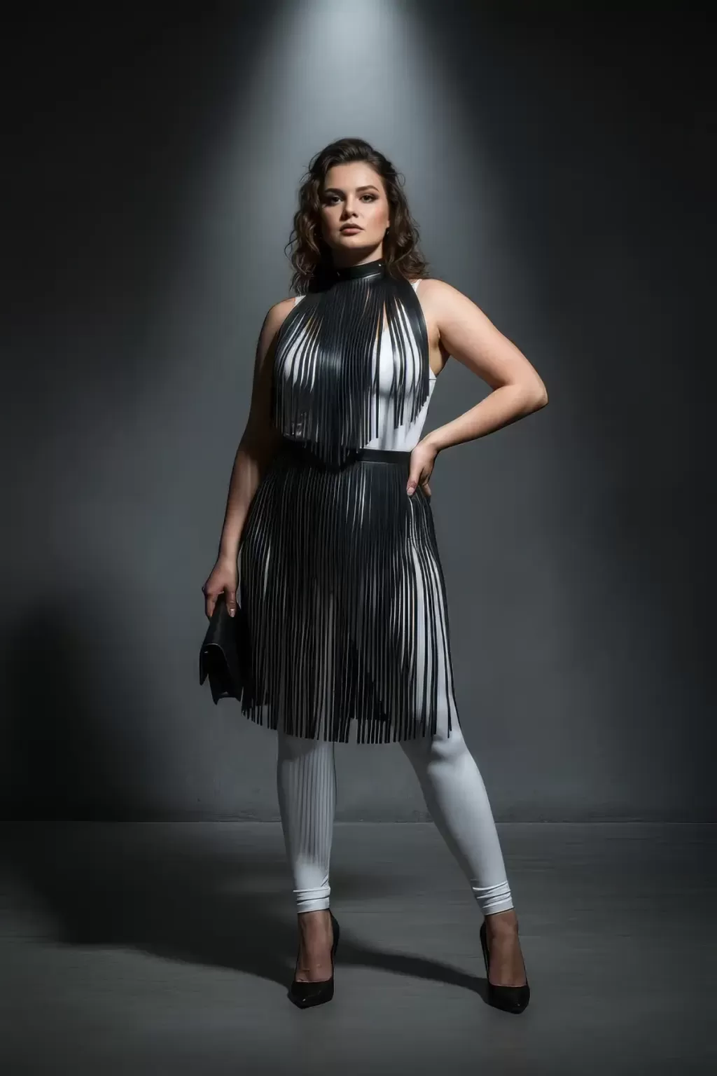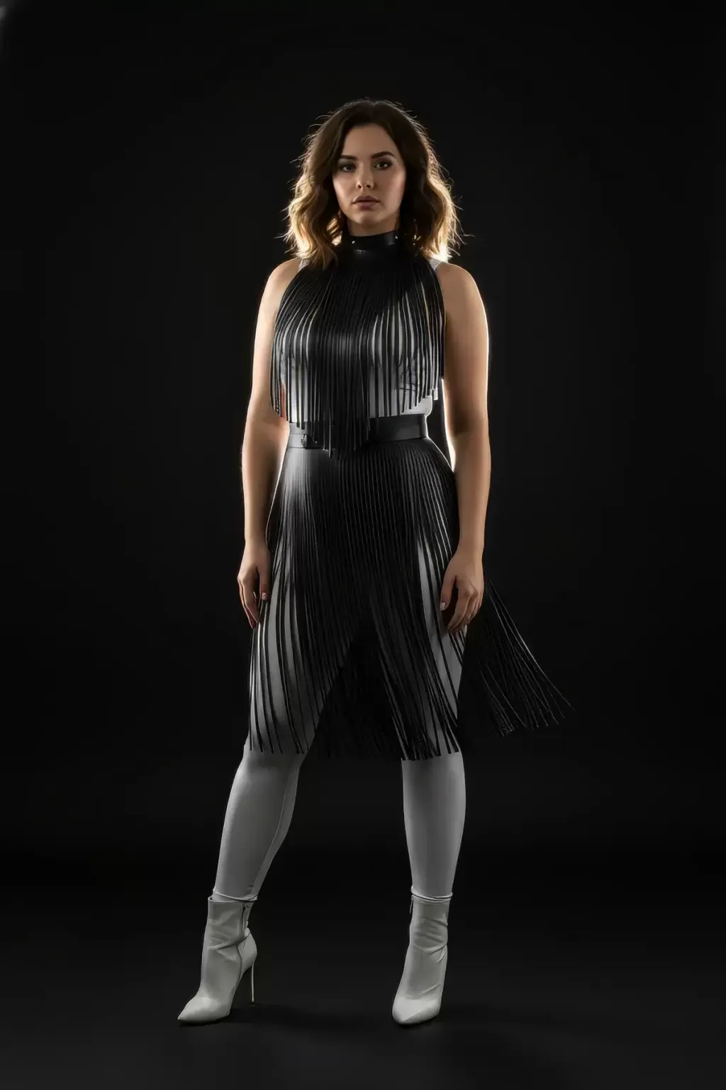 Büyük Beden Siyah Püskül Detaylı Deri Etek Uzun Kombin Parçası - APFT997